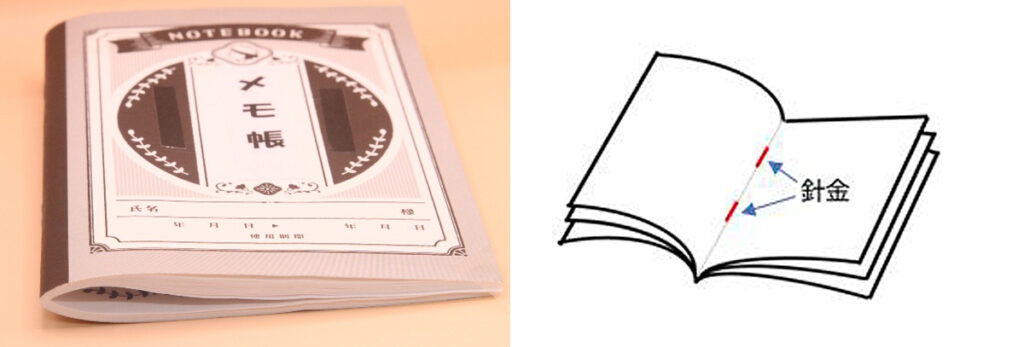 針で綴じてあるだけの本なので、本が開きやすいのが特徴です。